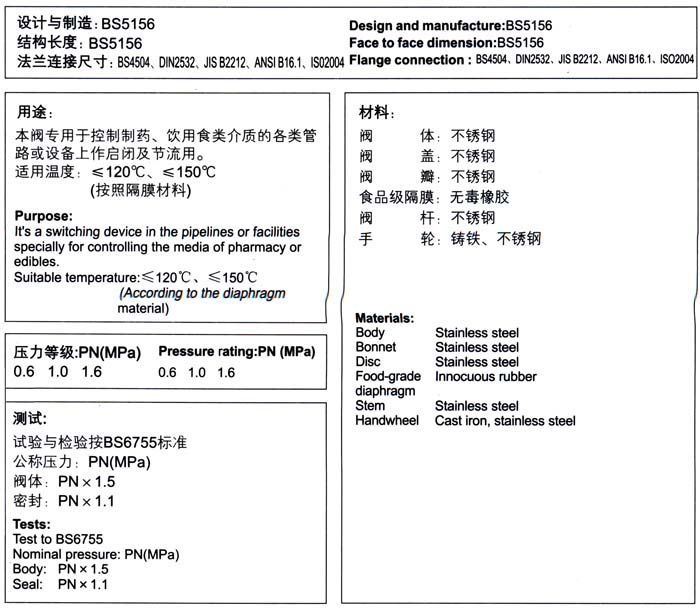2、若已經(jīng)由設(shè)計(jì)單位選定我公司的衛(wèi)生級隔膜閥產(chǎn)品型號,請按型號直接向我司訂購;
