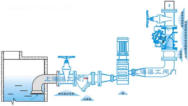 JD745X多功能水泵控制閥的接管系統(tǒng)采用調(diào)節(jié)閥控制,通過設(shè)定調(diào)節(jié)閥的開度,可方便實(shí)現(xiàn)需要的各項(xiàng)控制參數(shù),如主閥的開啟速度、緩閉速度等等。