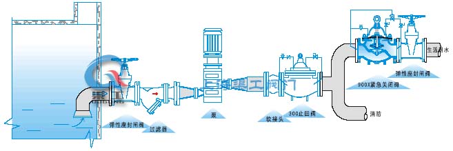 900X緊急關(guān)閉閥用于生活供水和消防供水并聯(lián)供水系統(tǒng)中,正常情況供生活用水,當(dāng)火災(zāi)發(fā)生時(shí)消防用水時(shí),900X緊急關(guān)閉閥自動(dòng)關(guān)閉生活用水,可以有夠量的消防用水。當(dāng)消防停止用水時(shí)壓力減少,900X緊急關(guān)閉閥自動(dòng)恢復(fù)生活用水,該閥使系統(tǒng)不需要另設(shè)消防單獨(dú)供水管網(wǎng),大大地節(jié)省了工程建設(shè)成本和日常的用水量。該閥控制靈敏、調(diào)試簡(jiǎn)單、使用時(shí)間長(zhǎng)。